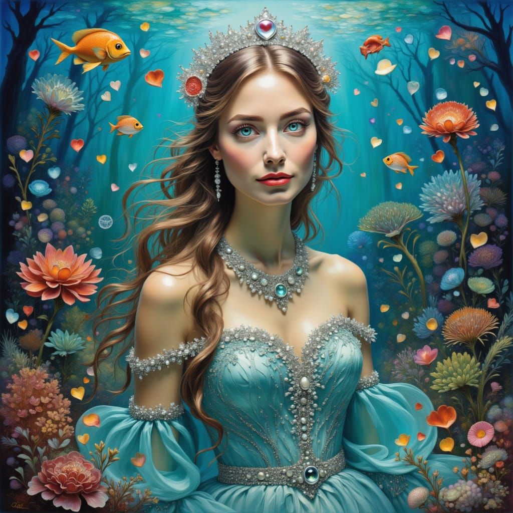Generate beautiful Queen of the Sea images for free. Customize with jewels, pearls, and coral crowns.