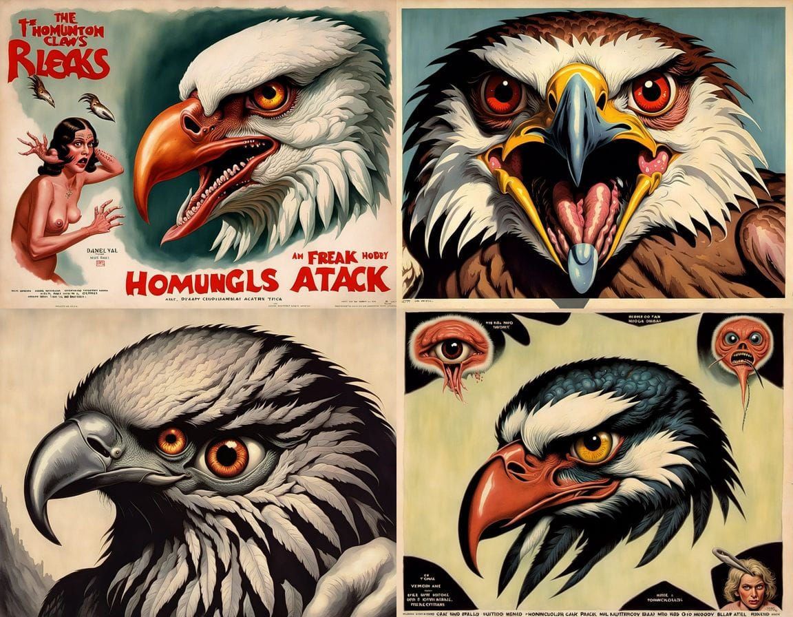 Make your own bizarre and grotesque vintage horror movie posters with our free AI image generator!