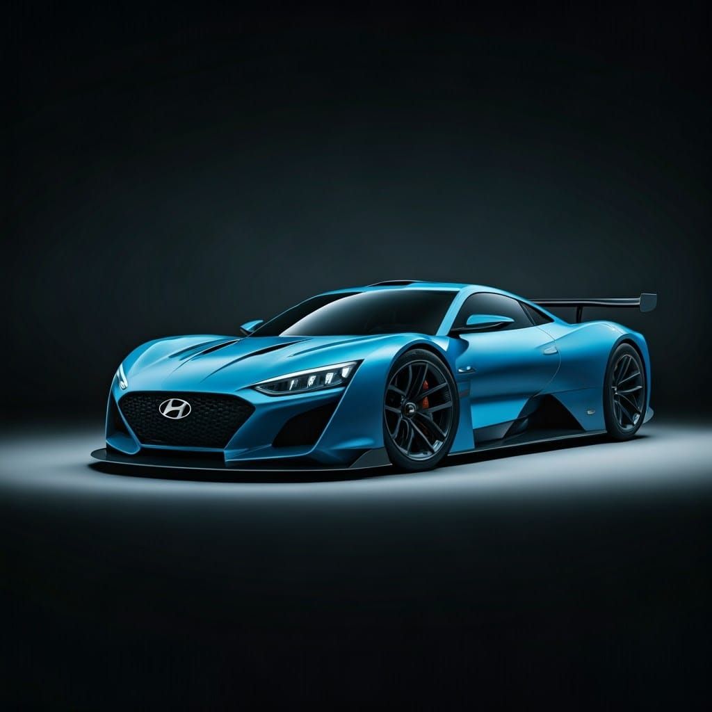 A studio photograph of a Hyundai RN22 GTP concept car. This image showcases the vehicle's aerodynamic design and sleek curves, captured with natural lighting and a shallow depth of field.