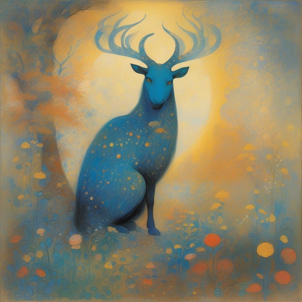 This image features a gentle, mystical creature rendered in a luminous, Symbolist style reminiscent of Odilon Redon's art. The portrait evokes an ethereal and dreamlike atmosphere.