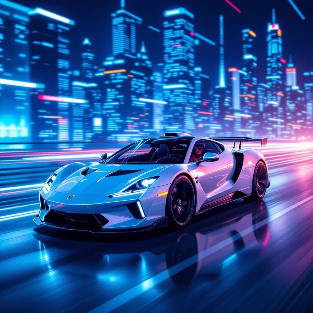 This image depicts a speeding figure moving rapidly across a landscape. The AI generated image conveys a sense of dynamic motion and travel.