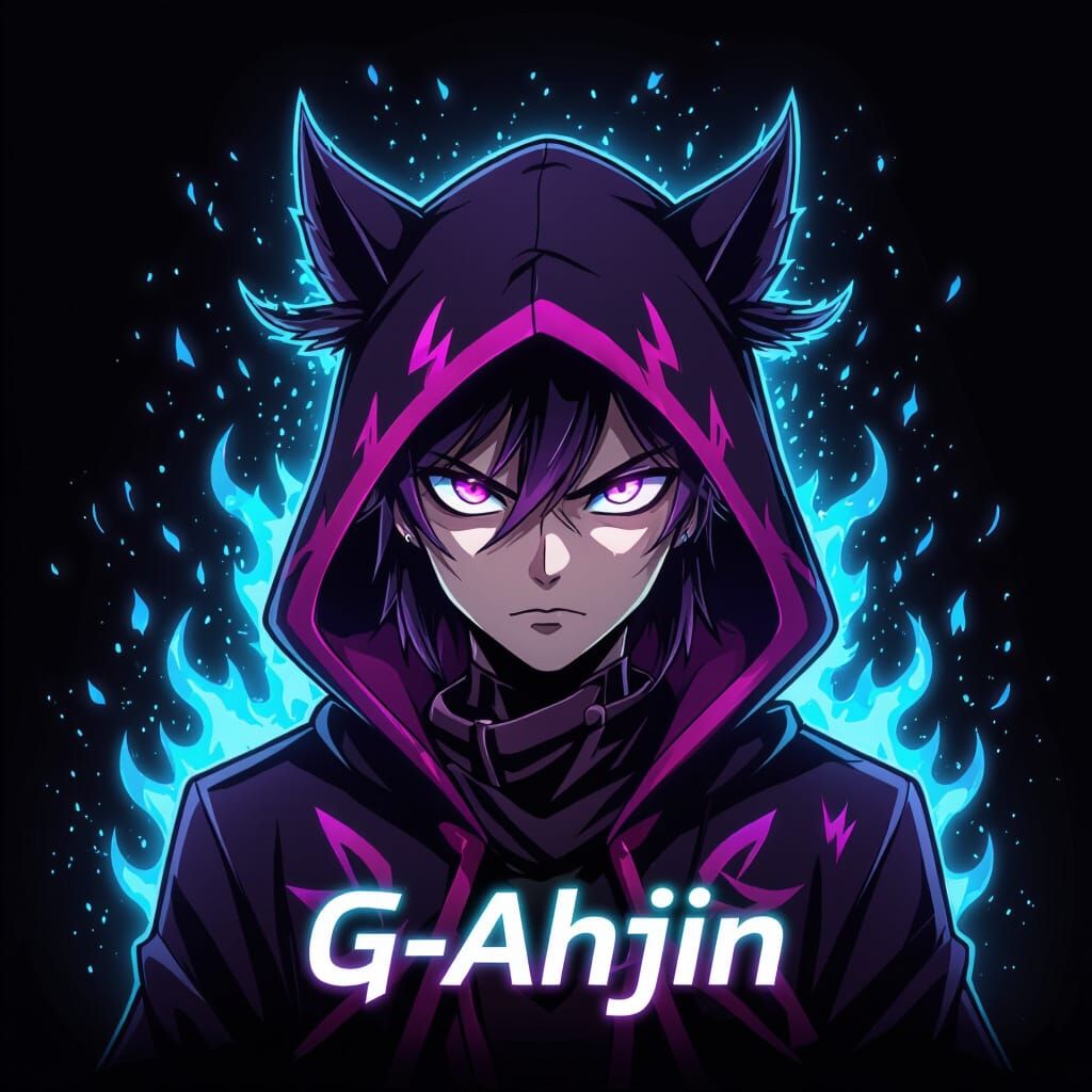 This image shows an aggressive, anime-style logo featuring a hooded shadow engulfed in purple and black flames. The design incorporates sharp edges, a glowing aura, and luminous energy in a dark, intimidating style.