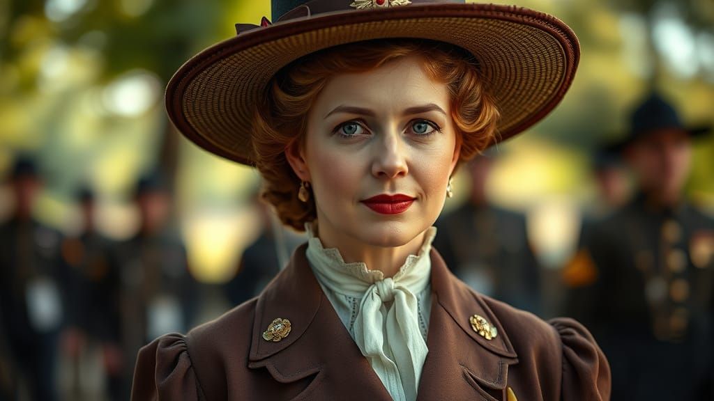 This image shows Dorothea Lynde Dix in Victorian attire as Superintendent of Army Nurses during the Civil War. The photograph, reminiscent of Leibovitz, McCurry and Parks, features soft bokeh and warm natural lighting.