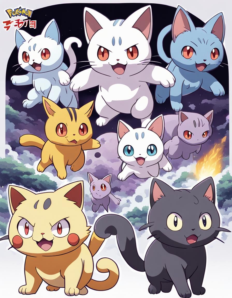 Design your own ghost cat Pokémon with our free AI image generator, featuring unique characteristics and personalities