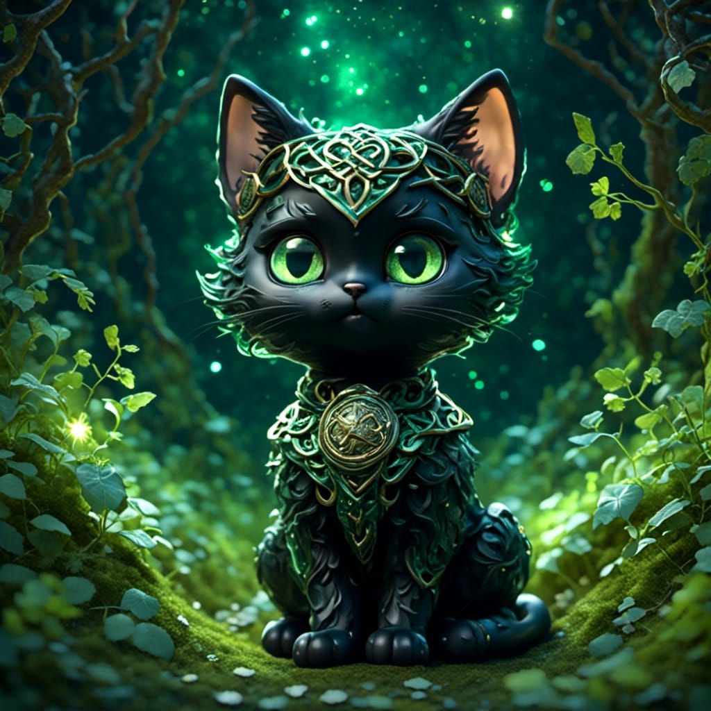 <lora:Adorable 3D Real:1.0> <lora:Fallen Angel:1.0> adorable black chibi cat as celtic Goddess, dark starry night, gorgeous eyes, in green grassy forest and cosmic sky in background, soft lighting, sharp focus, by Marc Simonetti & Yoji Shinkawa & WLOP, 3-D studio photo, intricate details, highly detailed ...