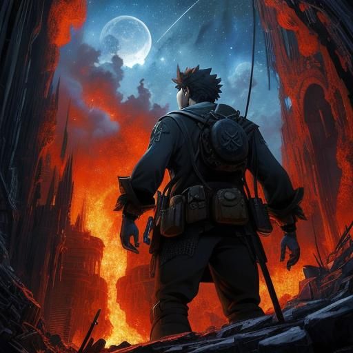 A vibrant image depicting a molten iron interpretation of Starry Night. This abstract expressionist piece features intricate details, deep colors, and natural lighting, reminiscent of anime key visuals.