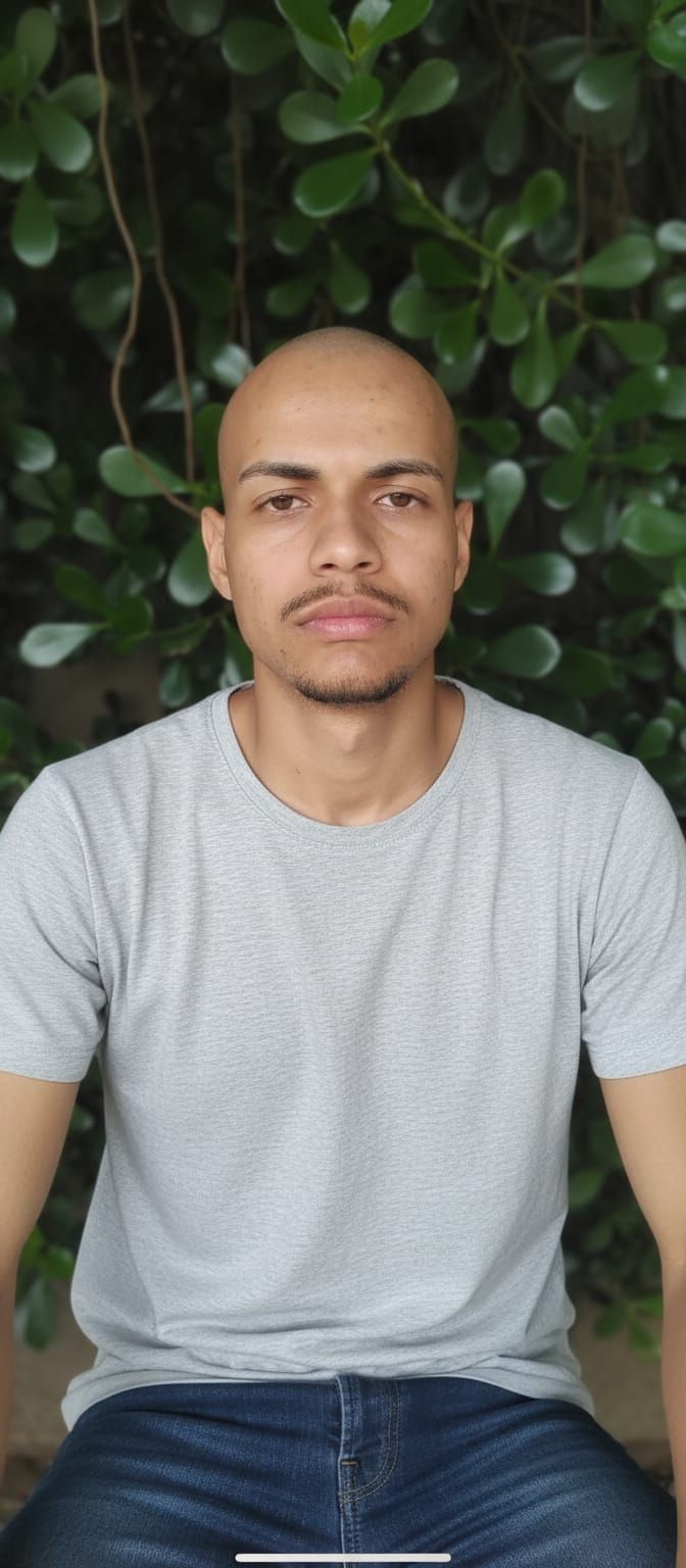 This image shows a high-definition realistic portrait. The subject has a neutral expression and is wearing simple clothing. The image has a clean and modern aesthetic.