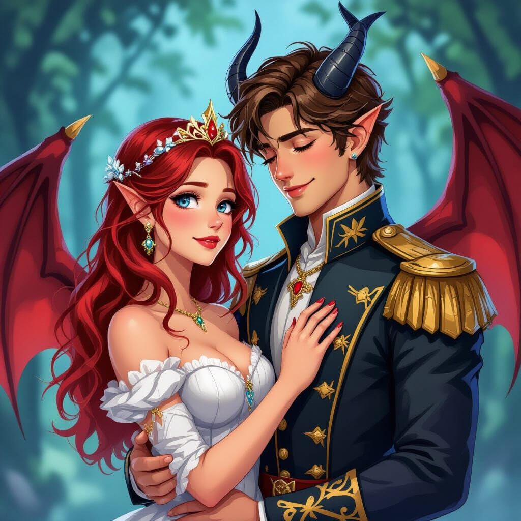 This image shows a demon who has fallen in love with a prince. The artwork depicts the unlikely relationship with dramatic tension and emotion.