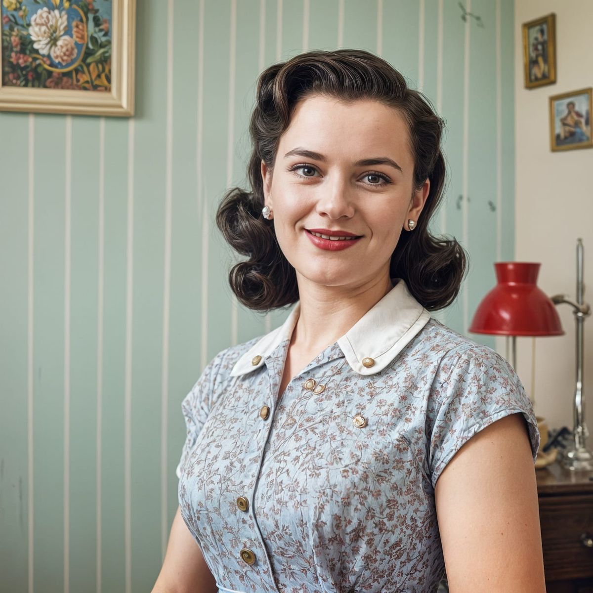 Easily generate your own realistic 1950s housewife portraits and more with our free AI image generator.