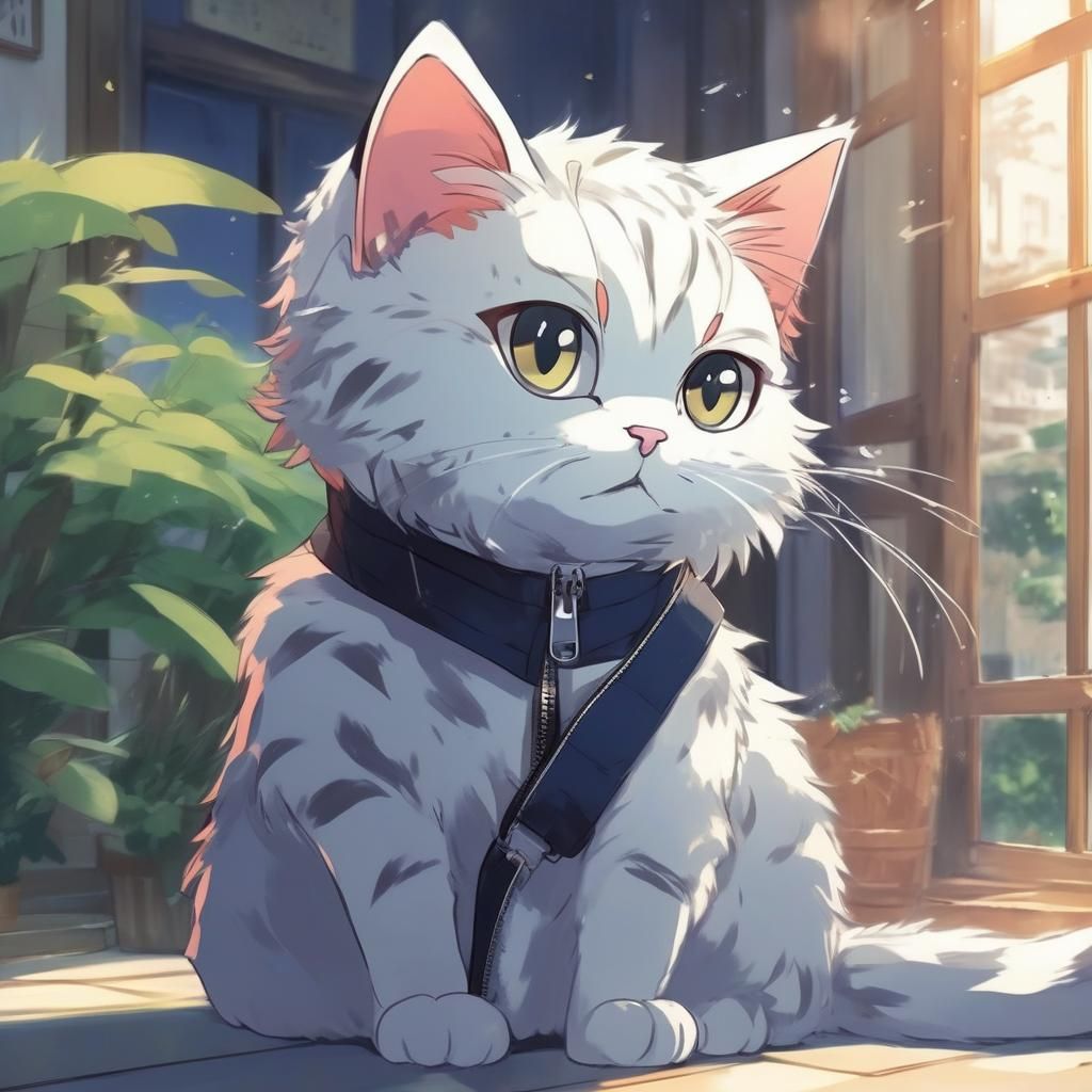 This image depicts a cat unzipping its fur, in an anime art style. The artwork features key visual elements reminiscent of Japanese manga and pixiv styles.