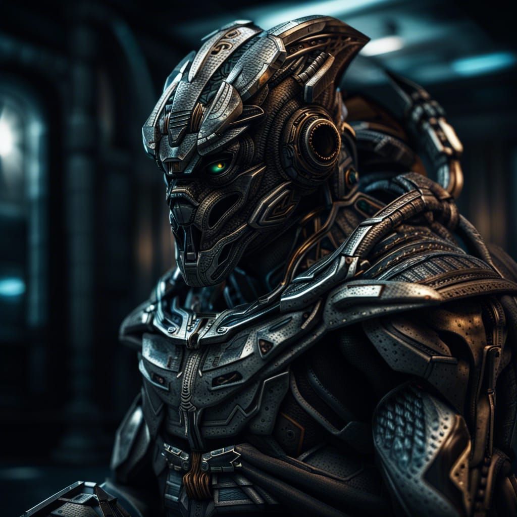 This image shows a highly detailed and sharp protogen. The image is beautifully shot with a cinematic and atmospheric feel, boasting high contrast and perfect composition.