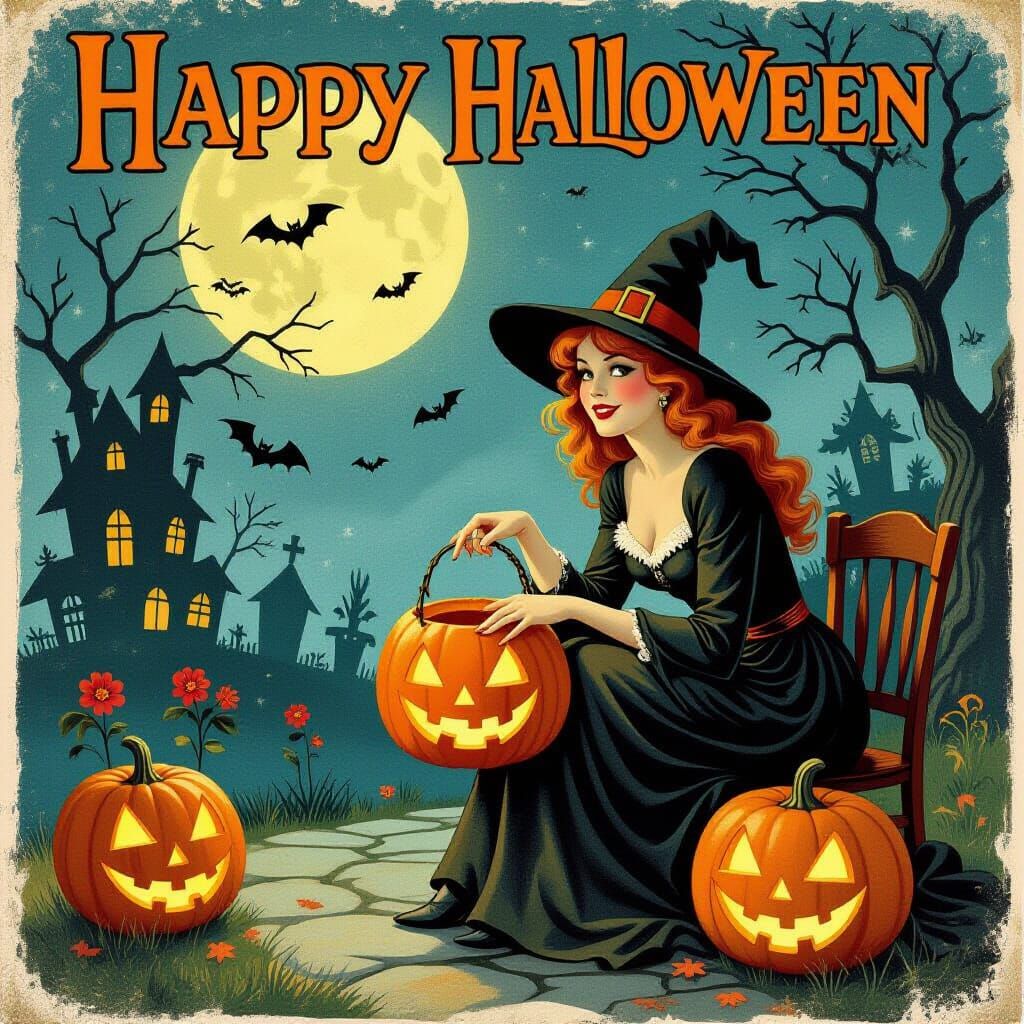 Design your own vintage Halloween postcards with our AI image generator. It's free and easy!