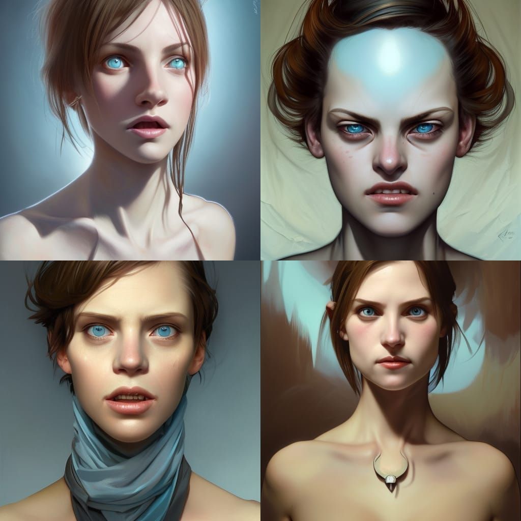 This image shows a detailed portrait of a young woman with striking features. The artwork is rendered with dynamic lighting and intricate detail, in a style reminiscent of digital art.