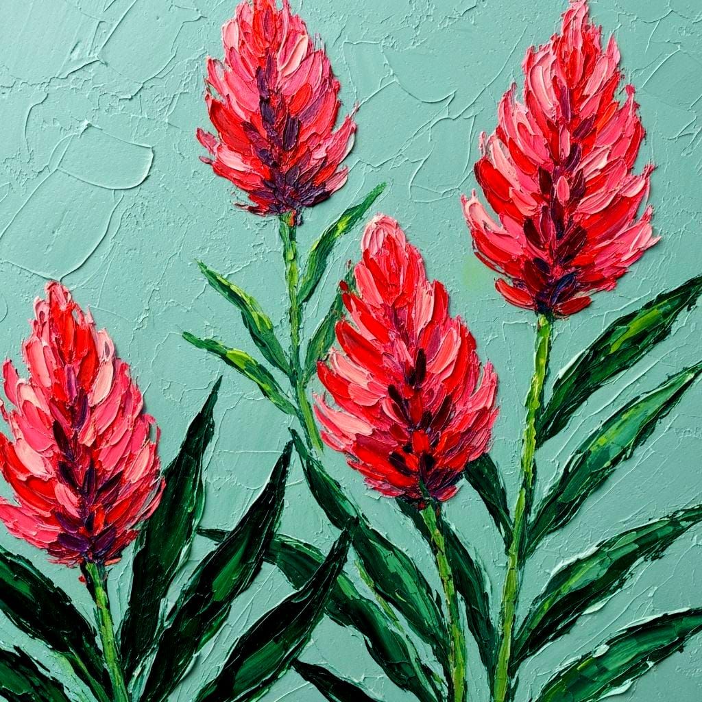 This image showcases a vibrant impasto painting of exotic ginger flowers in bloom. The thick paint texture and impressionistic style create a visually rich botanical masterpiece.