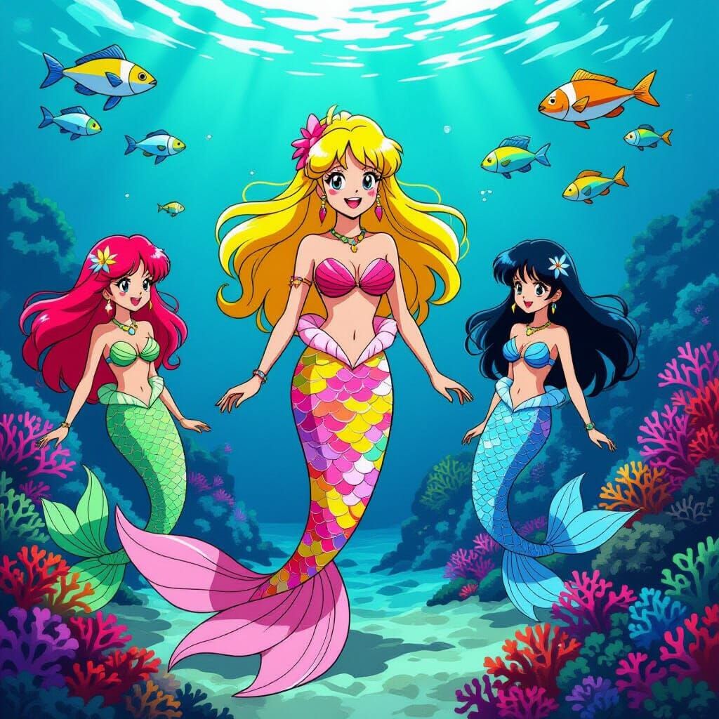 Craft your own 80s/90s anime-style mermaid images with our free and easy AI generator.