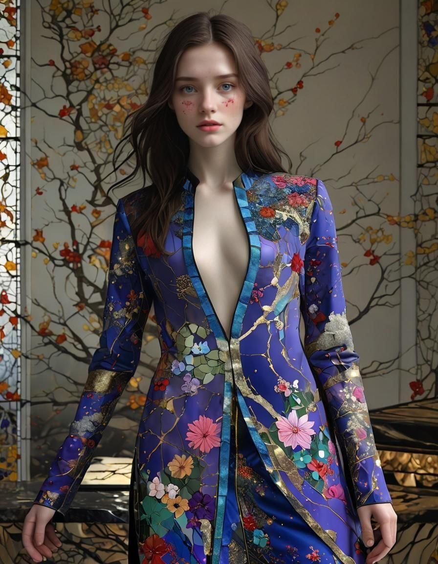 "Extreme colour flowery explosion! Kintsugi floral stained glass on marble! Flowers of forest defeating a bunch of wildflowers Confident bravery! Emerging from darkness! Splash ocean trees! Dream captured in intricate shapes ! background, hyperdetailed, by Harry Clarke, Aubrey Beardsley, dance magic"