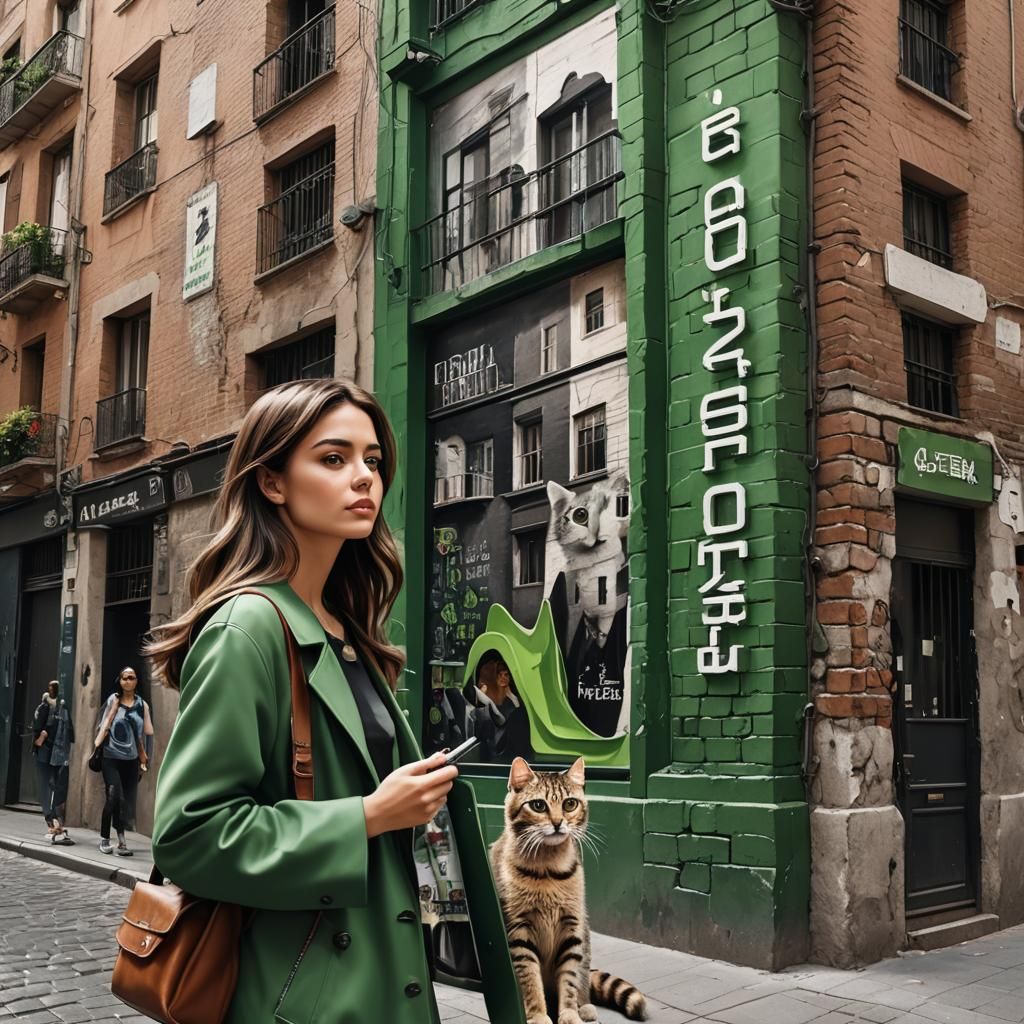 This image shows a girl holding a cat against a backdrop of city buildings. Rendered in 3D with vivid colors, soft lighting, and detailed textures, the artwork is reminiscent of a Barbie-style fashion illustration.