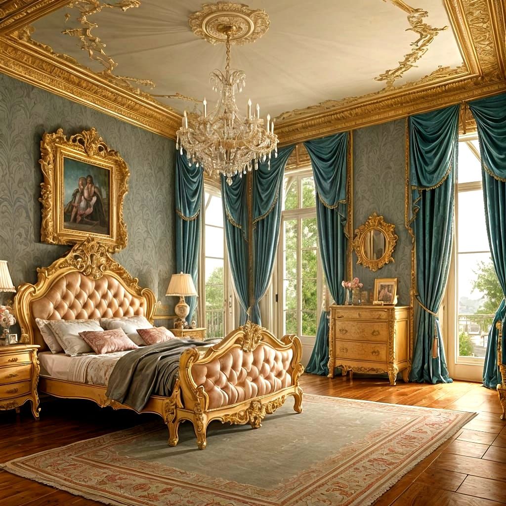 This beautiful image showcases a Rococo scene with vibrant colors and intricate details, evoking a sense of old-world charm and elegance.