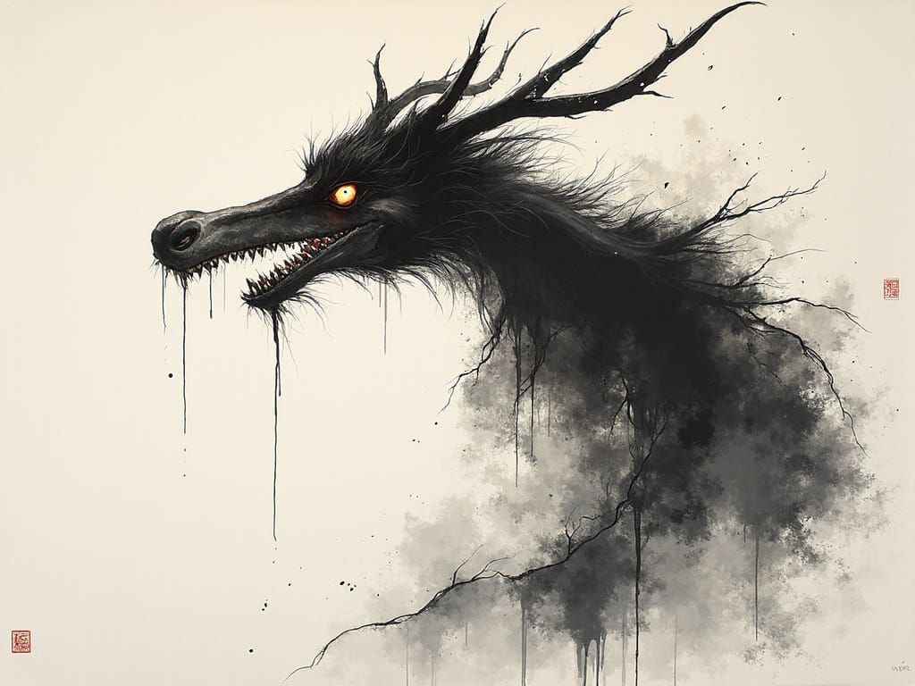 This intricate painting showcases a mesmerizing scene created with traditional Chinese ink techniques, highlighting the beauty of fluid artistry and subtle expression.