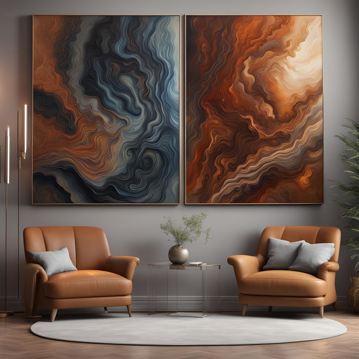 Create your own modern abstract art in earth tones. It's free and easy to generate beautiful wall art with AI.