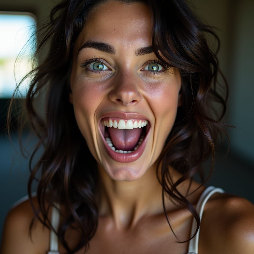 This image shows an AI generated face with an exaggerated jawline. The simple prompt resulted in a somewhat cartoonish and surreal image.