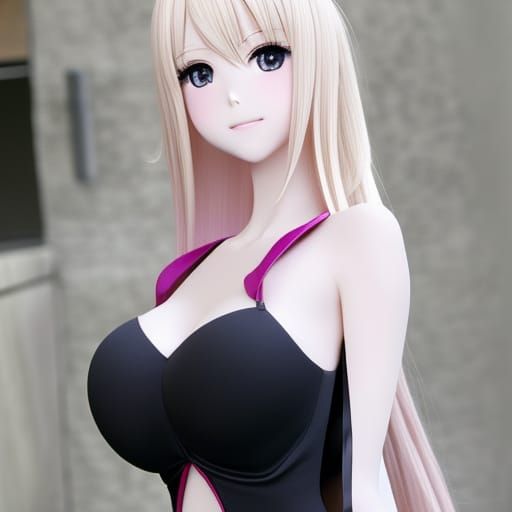 This image shows a petite anime-style girl with blonde hair. The character has a prominent bust and a slender waist, rendered in a typical anime aesthetic.