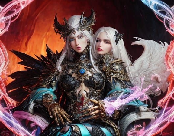 Create your own dark fantasy art featuring celestial figures on skull thrones, free and easily, with our AI image generator!