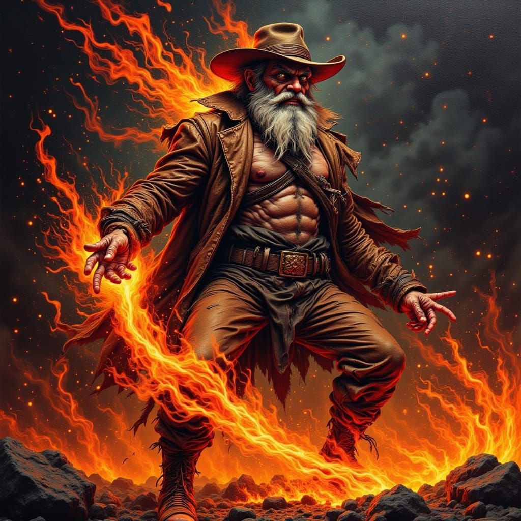 <lora:-Lunatic-:1.0> <lora:KirbyComics:1.0> Old Man McGurk, a dirty old copper miner who later became a super hero named “Flame Legs”. Mark Brooks and Dan Mumford, comic book art, perfect, smooth in Gouache Style, Watercolor, Museum Epic Impressionist Maximalist Masterpiece, Thick Brush Strokes, Impasto ...