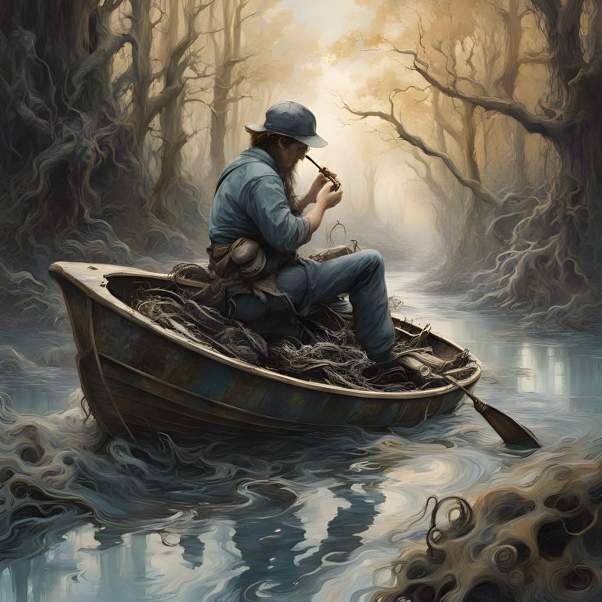 So cool!! This is fabulous!! Love the water and the guy smoking his pipe!! Great row boat!!!ππ₯°π€πΉπππΊππΈ