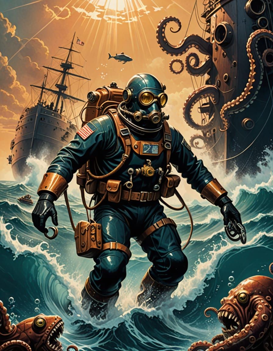 Easily create your own vintage-style underwater scenes with our free AI image generator. No design experience needed!