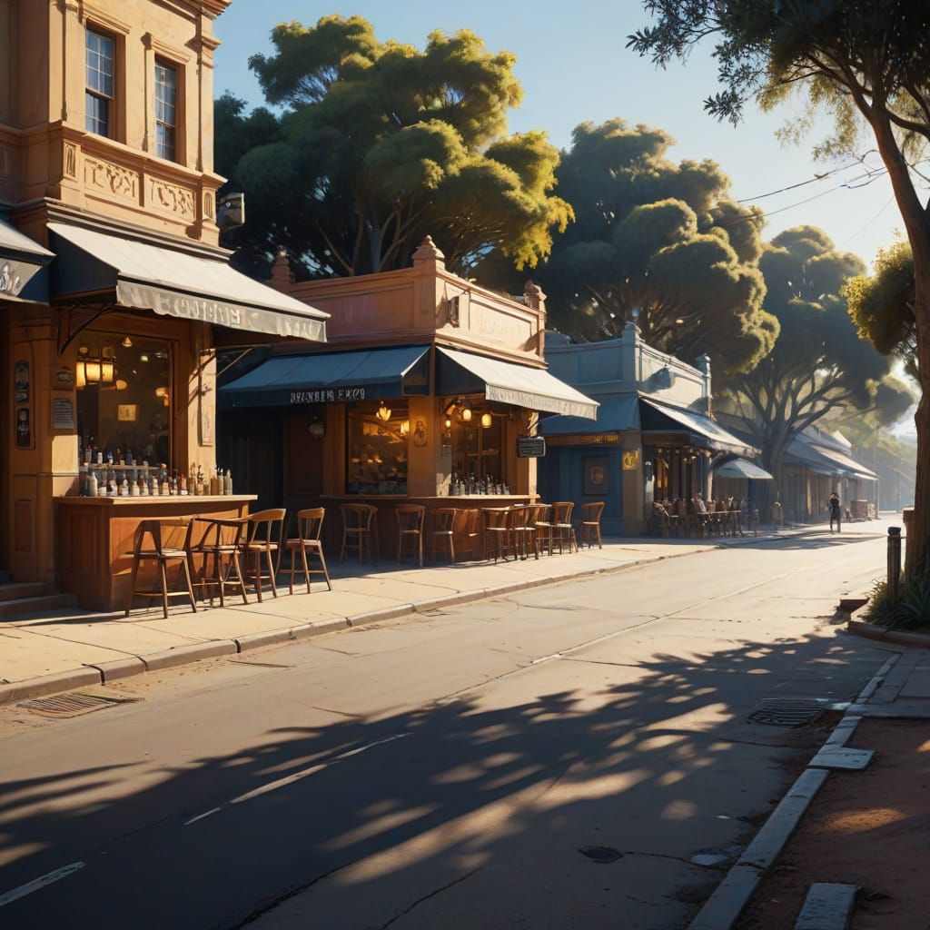 This museum-quality gouache painting captures Perth's charm with its sandy beaches, parks, street art, and bars. Experience thick brush strokes and impasto texture under warm sunlight.