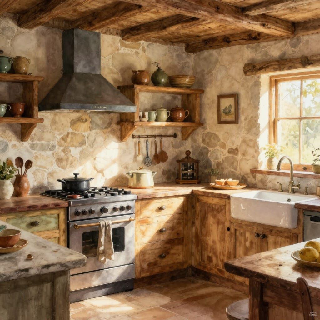 Generate your own charming rustic kitchen scenes with our free and easy AI image generator. Effortlessly craft warm, sun-drenched visuals.