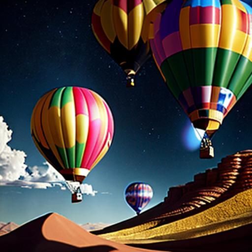 24 Cloisonné Cloisonné hot air balloons casting long shadows over a golden desert