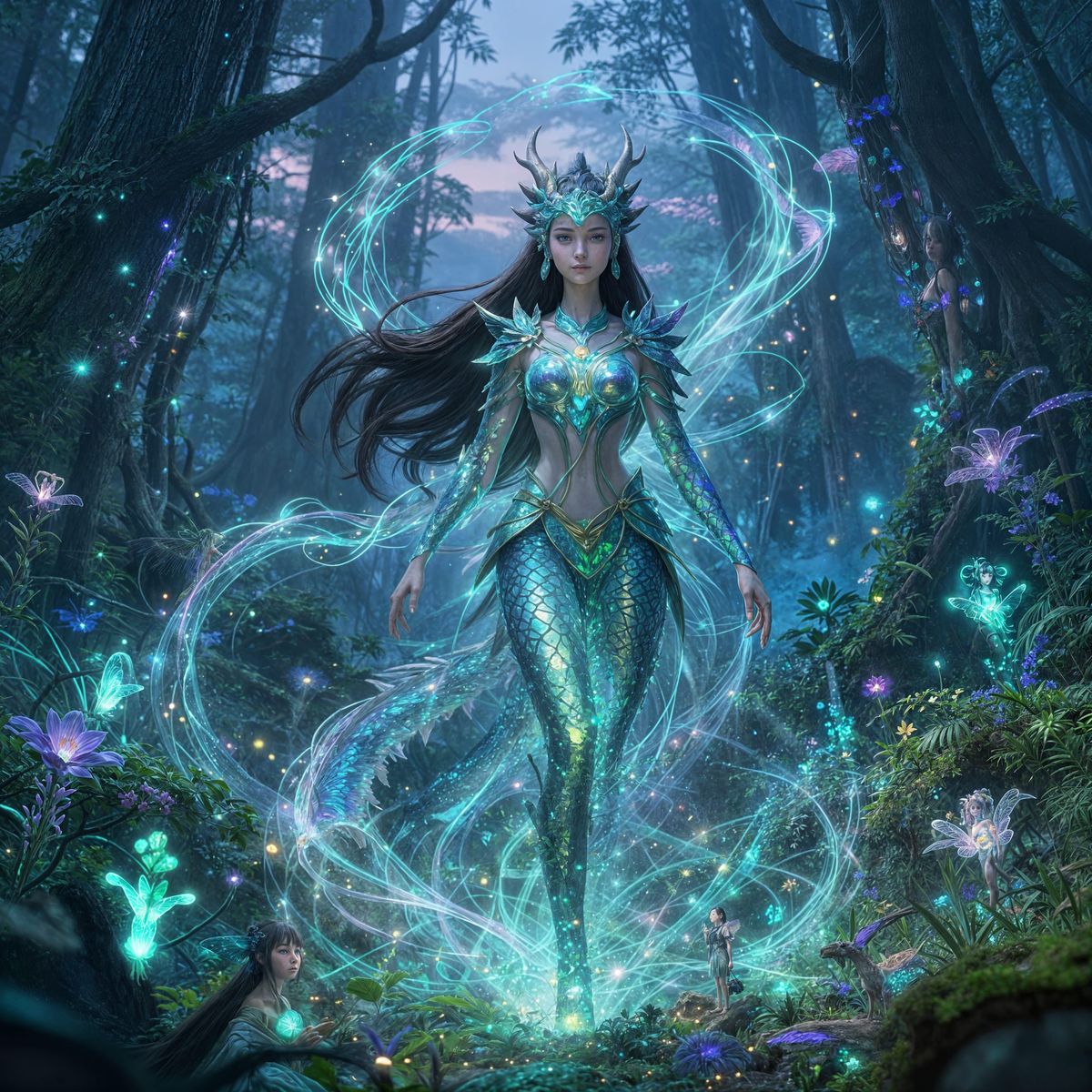 This image features Haku from Spirited Away in a vibrant, glowing forest inspired by Pandora, with iridescent fairy wings and the energy of Eywa.