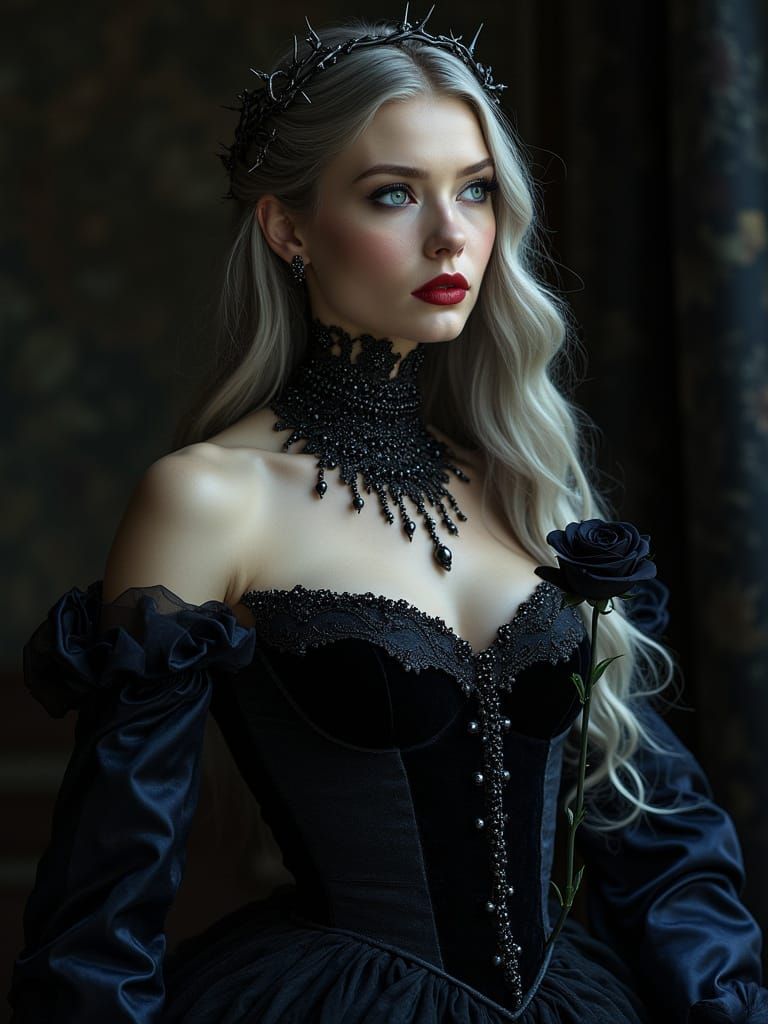 No es prisionera de la oscuridad; es su arquitecto. Cada sombra es un velo que ella teje, cada espina una promesa de su belleza peligrosa. Su corazón no es frío, es un jardín nocturno que solo florece bajo la luna.