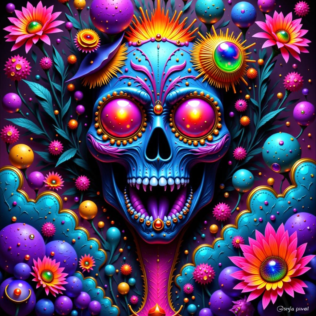 Create your own vibrant sugar skull and calaca images for free! Our AI image generator makes it easy.