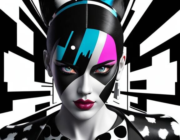 This is amazing. This more abstractisch prompt in combo with DS v8, that so much loves putting humans in images, lead to a fascinating portrait. That hallway like abstract background, her dotted outfit, that perfect touch of colors, and ofc her expression too, ... So very cool.