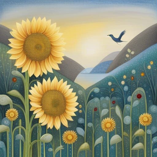 Create your own beautiful sunflower and bird images in the styles of Amanda Clark and Lucy Grossmith. It's free and easy!
