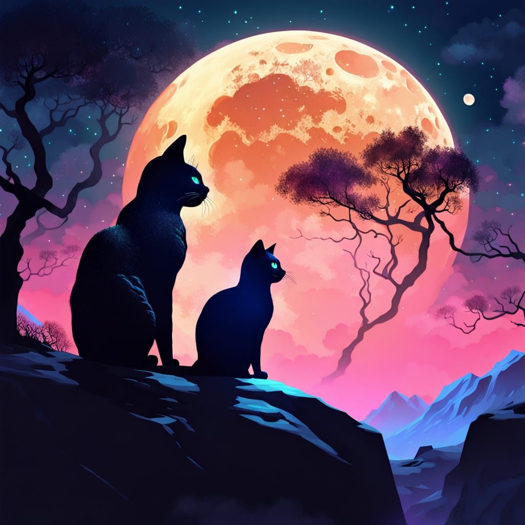 Easily generate your own surreal moonlit images with our free AI image generator, featuring cats and magical scenes.