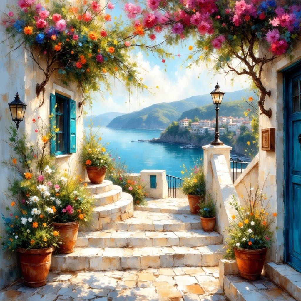 Generate stunning Mediterranean sea views and sun-drenched terraces with our free AI image generator. Easy and fun!