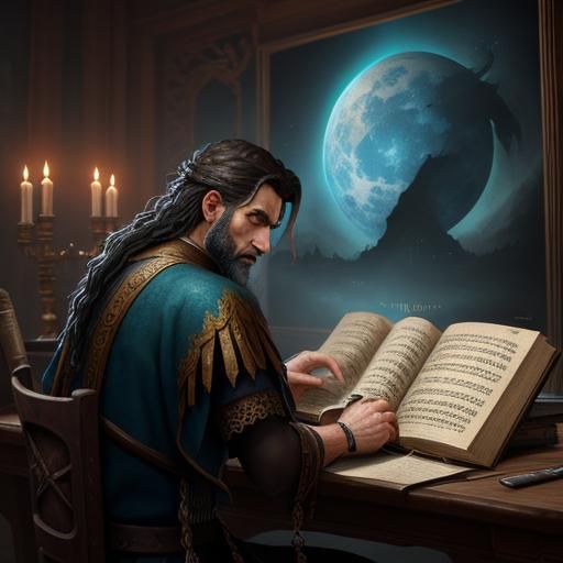 This image shows an elderly Jewish man deeply engrossed in studying the Torah. It's presented as detailed matte painting with rich colors and intricate fantasy art details.