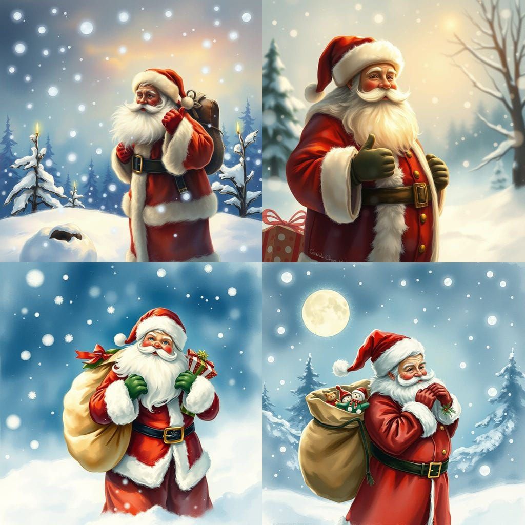 Generate your own magical winter wonderland scenes with vintage Santa Claus watercolours. Free and easy AI image creation.
