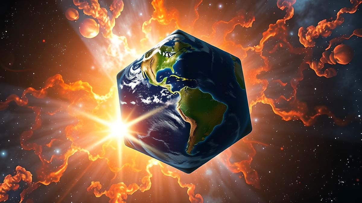 hyper-detailed, high-res, cube in the style of earth in a cosmic space nebula, cubism, style of Jason de Graaf, Turner, accurate, photo-realism, light rays, depth of field, shadow depth, accurate, depth of field, colours, volumetric lighting, volumetric shading, space core, trending on Artstation, ..................... ...