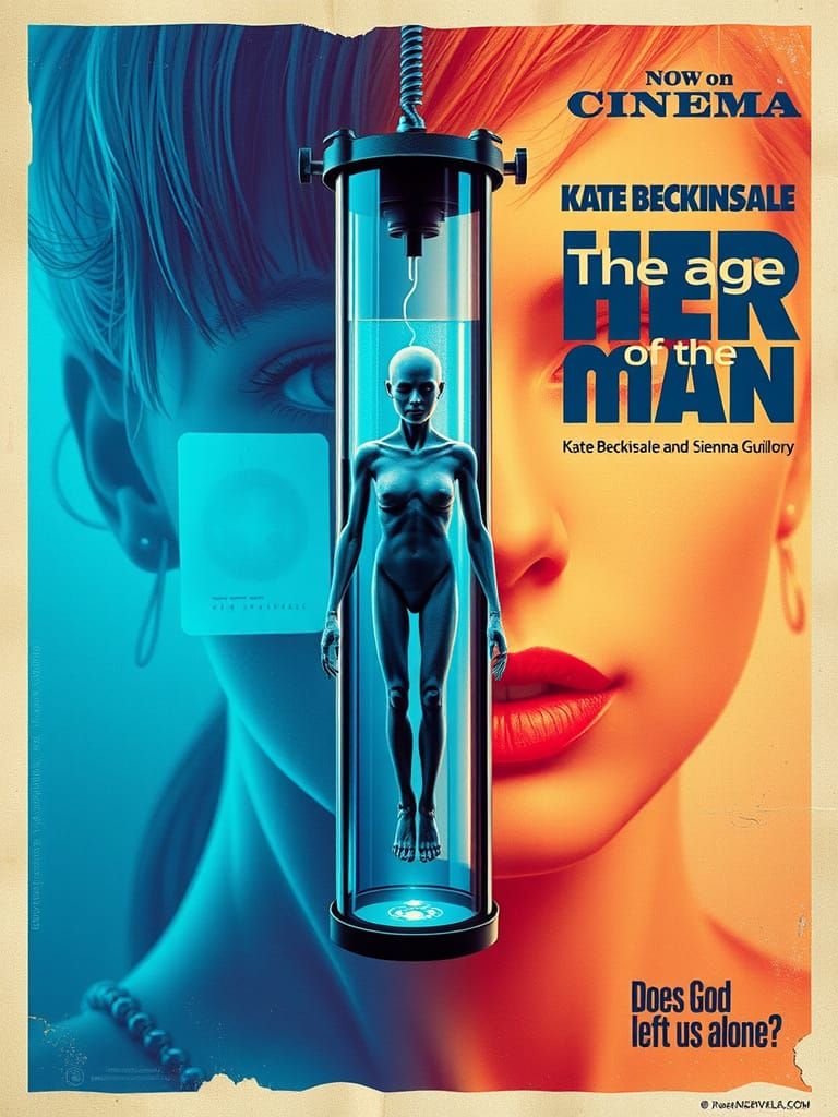 A vibrant movie poster printed on distressed cardboard. The poster shows a cryotube containing a suspended humanoid, with Kate Beckinsale's face in the background, in a photorealistic 1990s style.