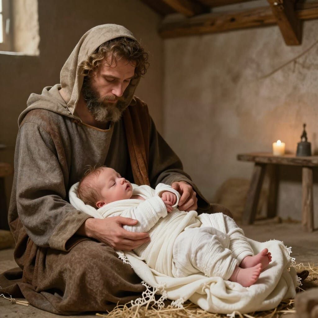 Luke 2:4-7: "Joseph also went from the town of Nazareth in Galilee to Judea, to the city of David called Bethlehem, because he was descended from the house and family of David. He went to be registered with Mary, to whom he was engaged and who was expecting a child. While they were there, the time came for her to deliver her child. And she gave birth to her firstborn son and wrapped him in bands of cloth, and laid him in a manger, because there was no place for them in the inn."