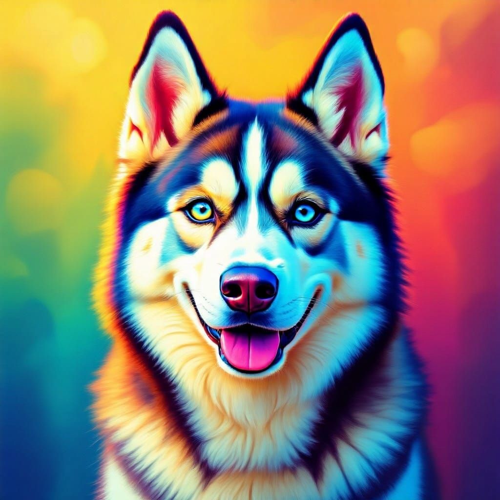 Easily generate your own vibrant and colorful Siberian husky art with our free AI image generator