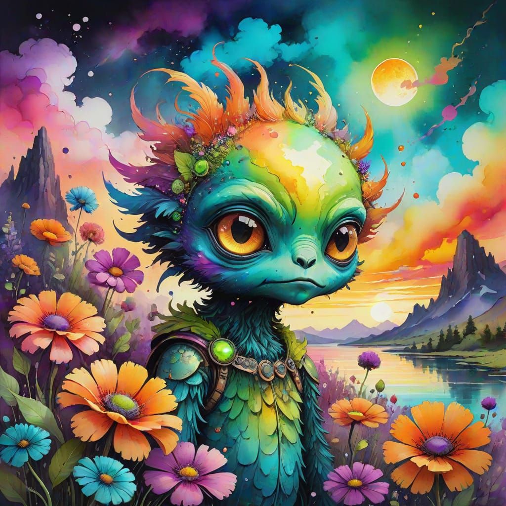 Create your own cute alien monsters with our free AI image generator. It's easy and fun!