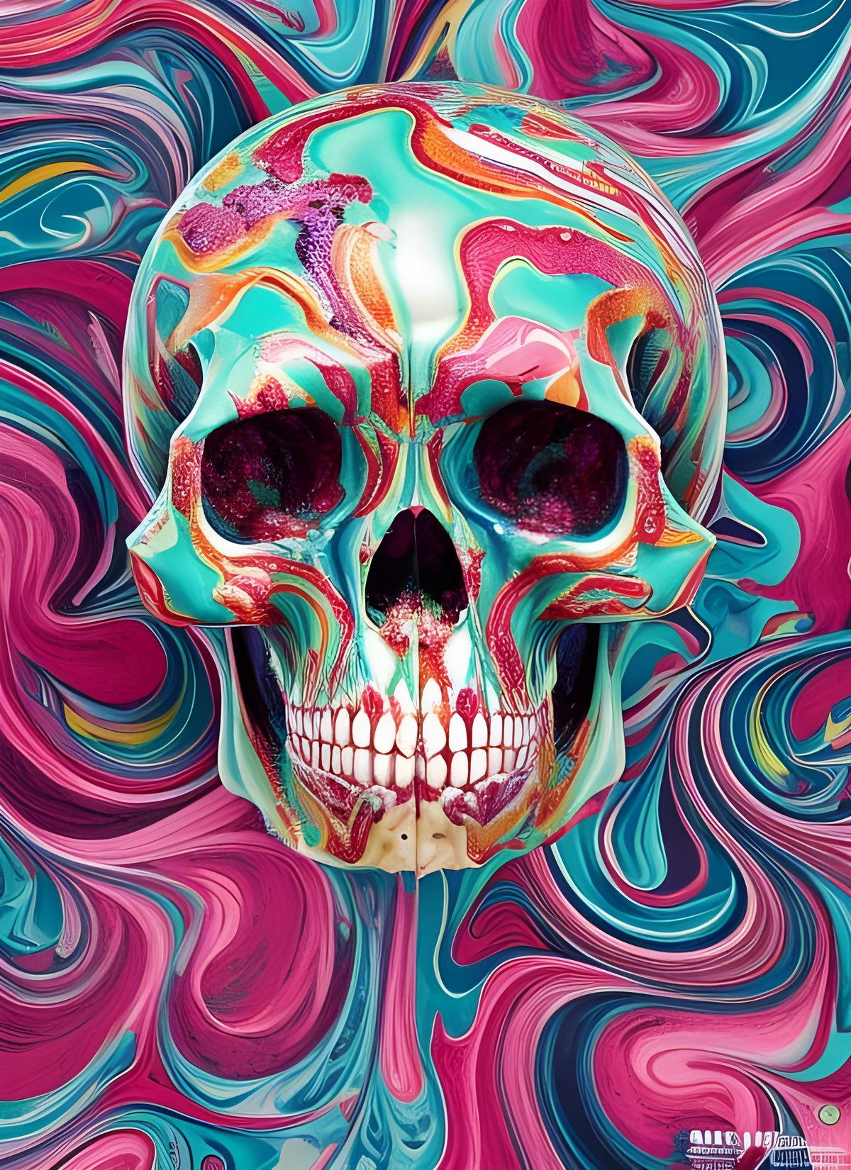 Create your own unique and colorful cotton candy skull images with our free AI generator!