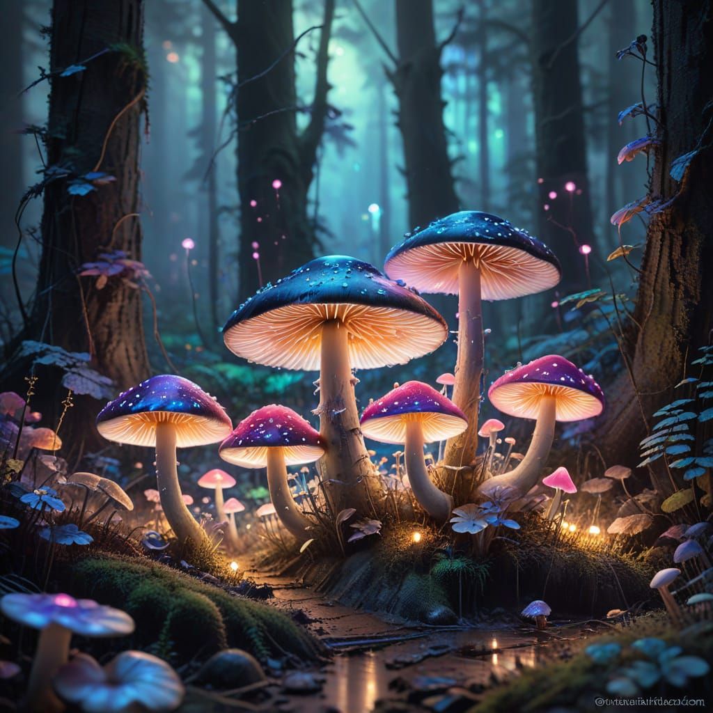 Unleash your creativity and easily generate fantastical forest images with neon mushrooms, free and easy with our AI image generator