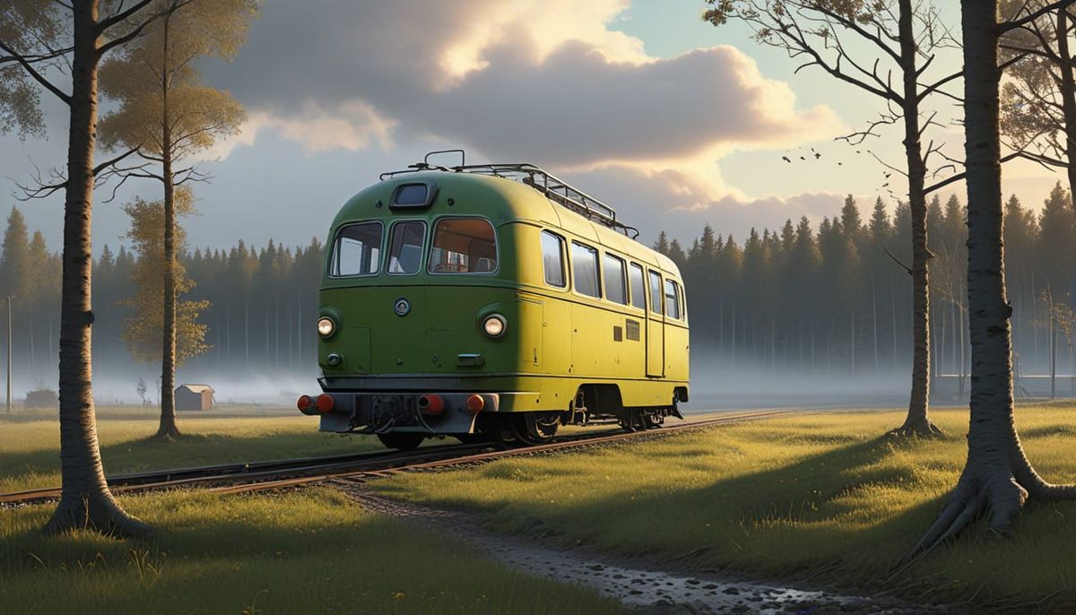 This image captures the essence of a futuristic cityscape, blending sleek architecture with a sense of mystique, reminiscent of the works of a renowned Swedish visionary artist known for his dreamlike depictions of technology and nature.